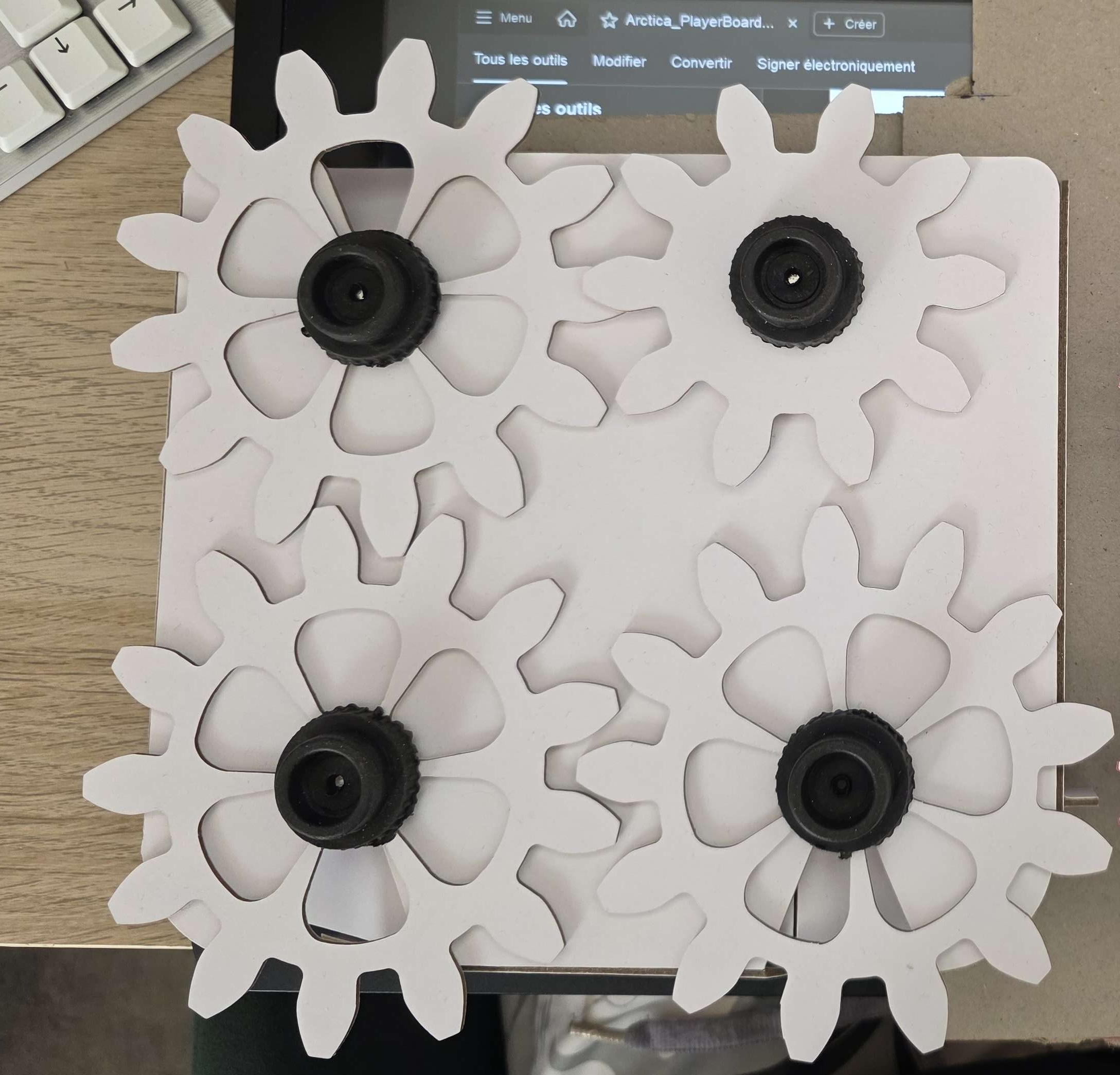 Finally, the last ingredient for this game recipe… I wanted to incorporate gears into the gameplay because very few games use them, and the experience I had when I discovered Tzolk’in was just amazing. The game offered a truly unique mechanic and automated worker movement.