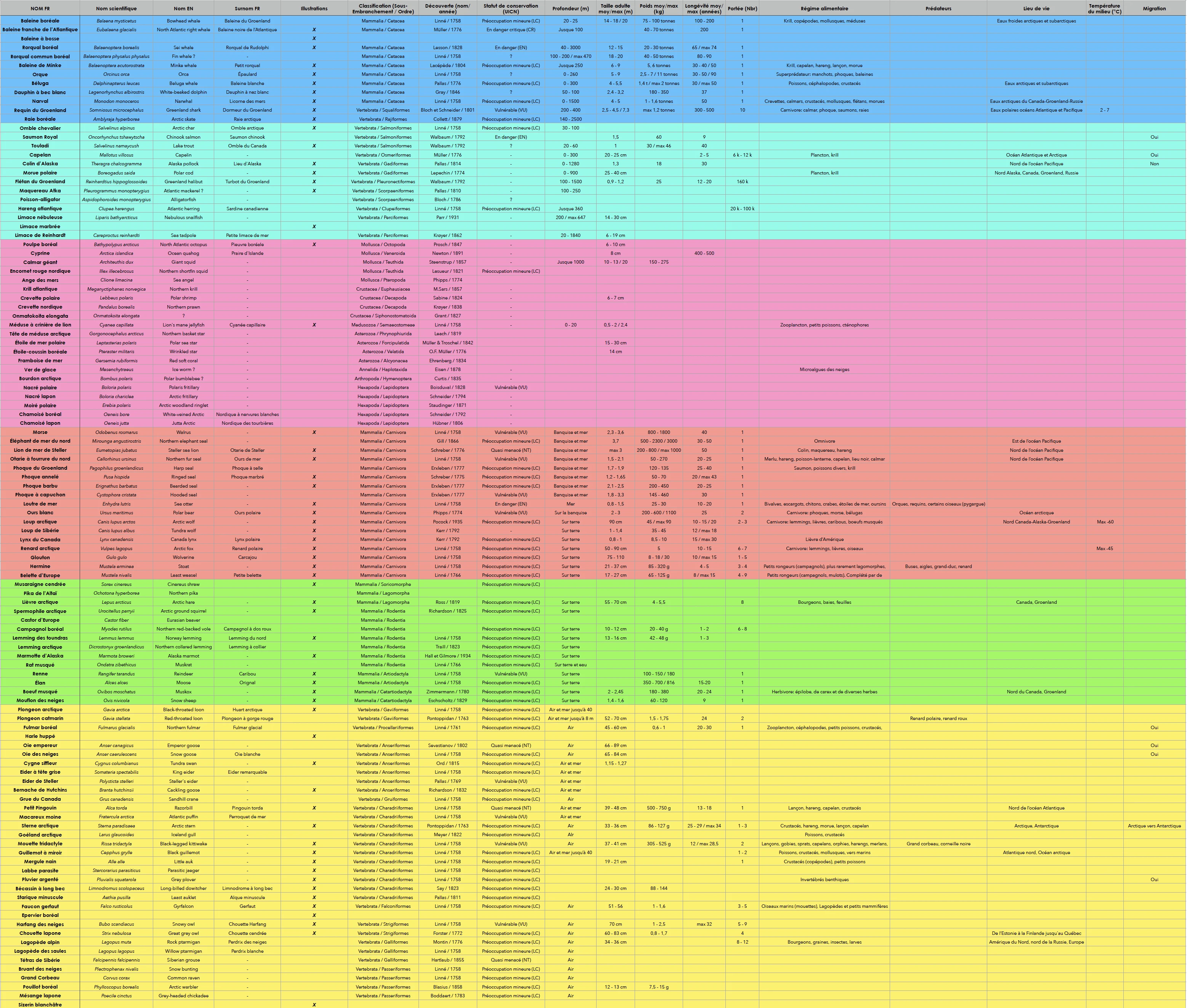 So I started listing all the species living in the Arctic and creating a huge table cataloging these animals. My table looked like this: